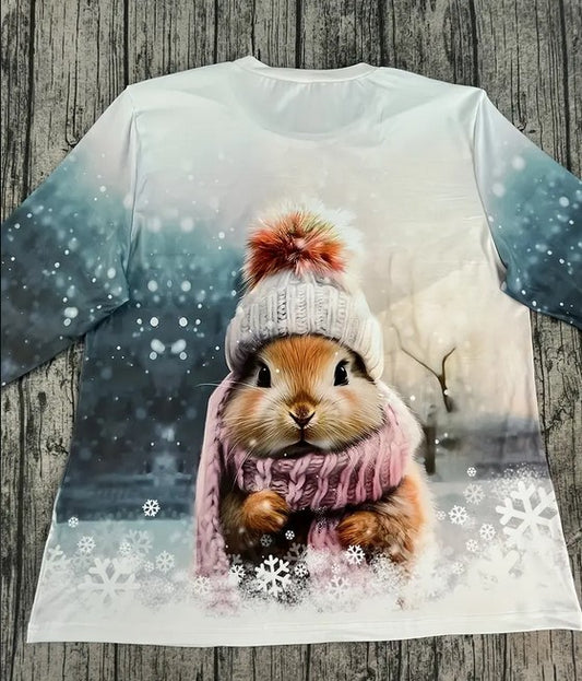 Damen Pullover Hase Schnee Rundhals Print Plus Size Langarm