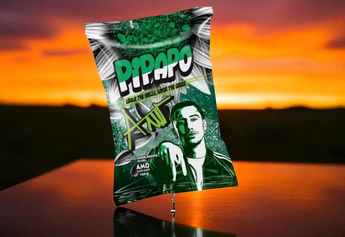 Erleben Sie mit Pipapo Amo geröstete Sonnenblumenkerne mit Salz die perfekte Fusion von Knusprigkeit, Süße und Stil. Entdecken Sie den einzigartigen Geschmack des Lifestyle-Snacks, inspiriert von TikTok und Rapper Amo. Genießen Sie den Sound beim Knacken der Schale und erleben Sie den perfekten Snack-Beat. Jetzt erhältlich in der 100g blauen Edition!