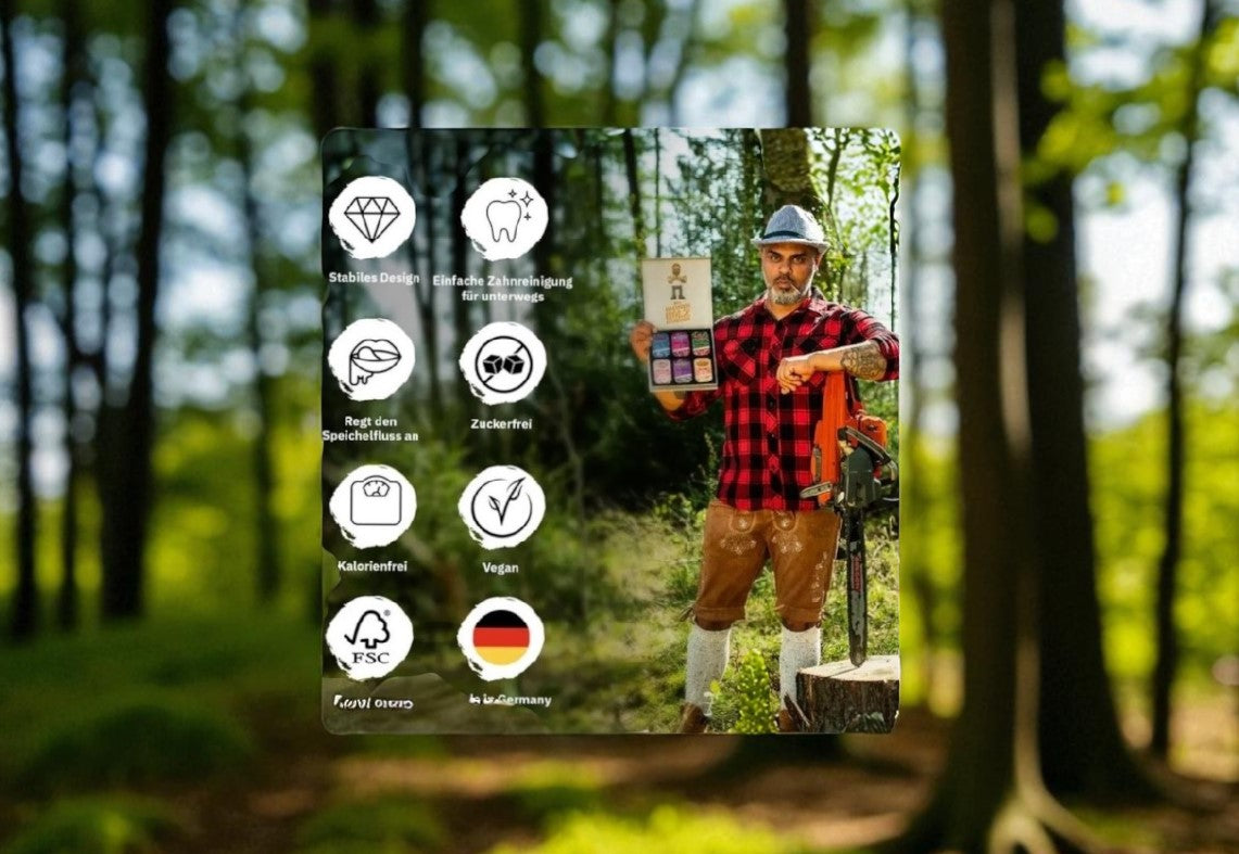 VEGAN, OHNE ZUCKER & KALORIEN - FSC-zertifiziertes Holz, mit natürlichen Aromen, handgefertigt in Deutschland – komplett zuckerfrei und kalorienfrei